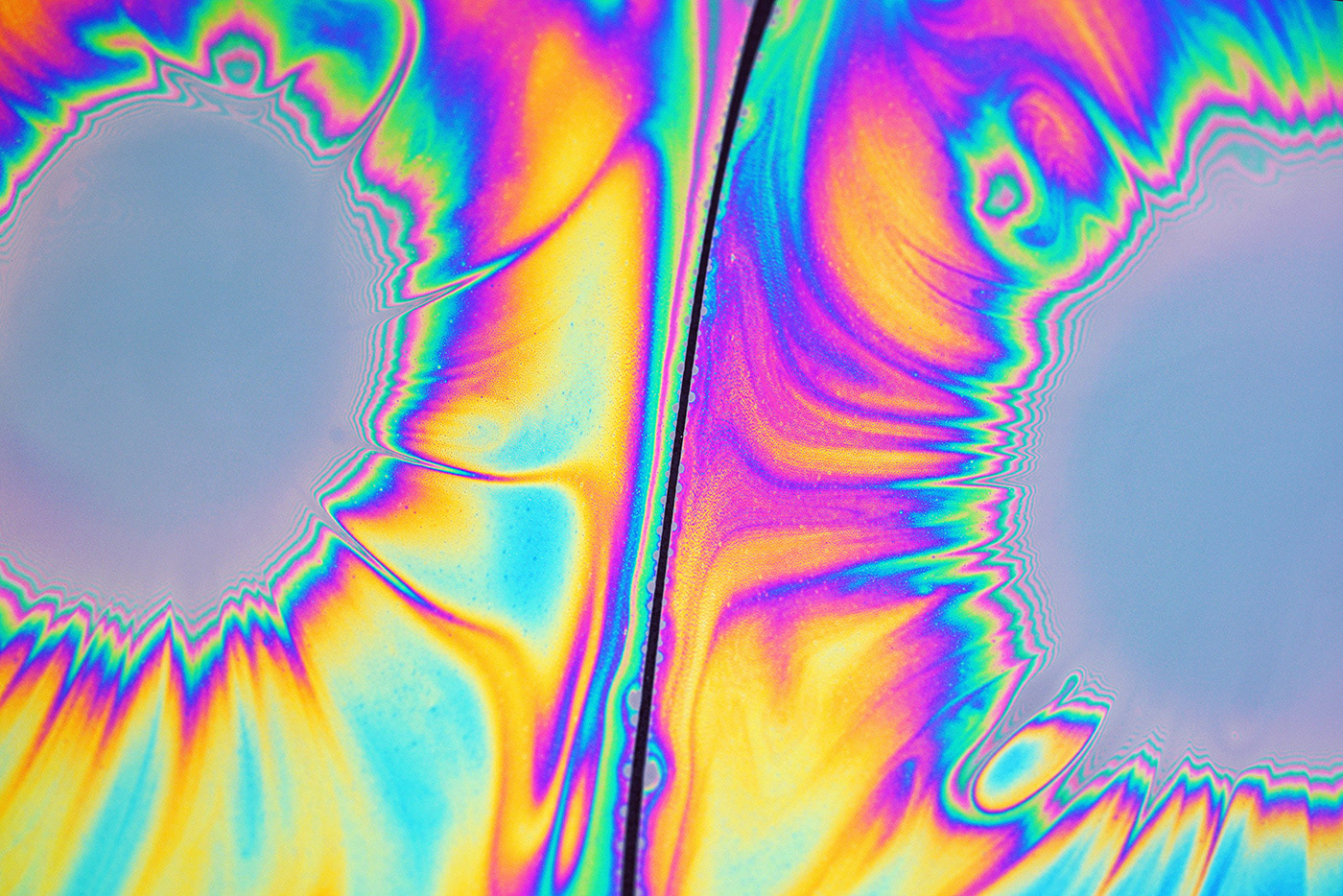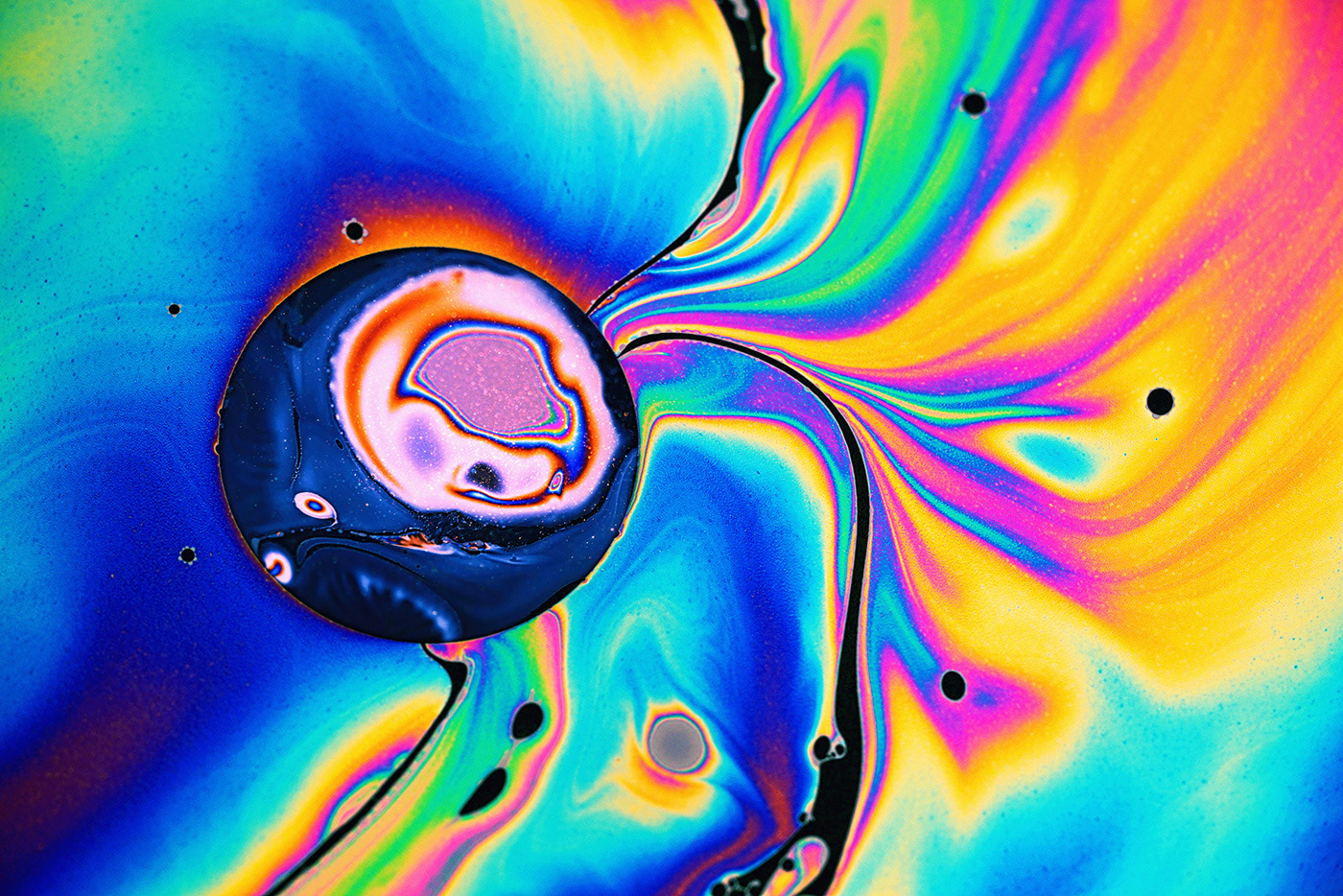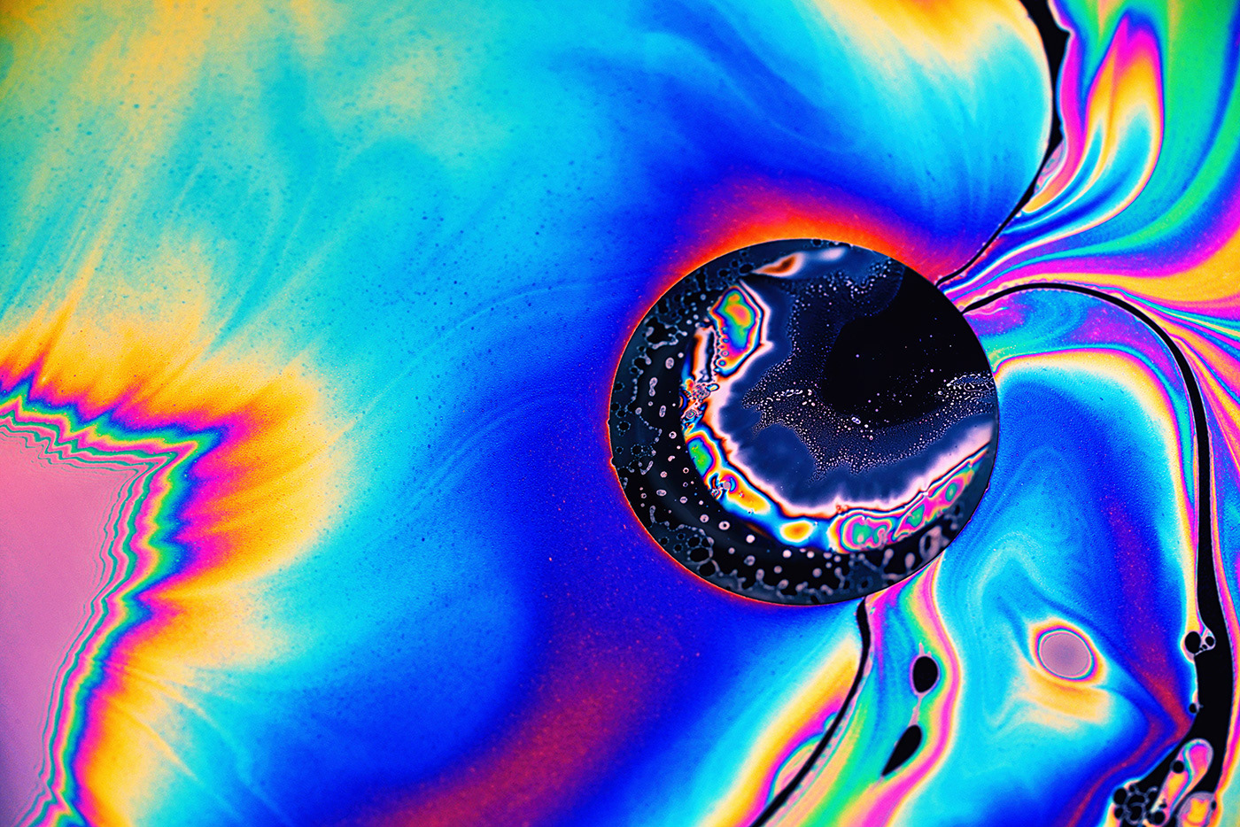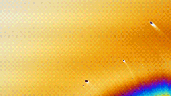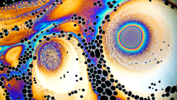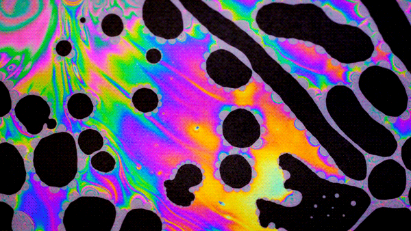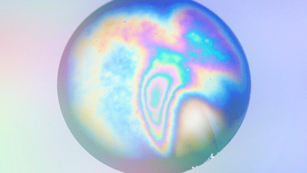 The main frames, because of which I made this video was ones where the rainbow spot originates inside the circle, spreads, but don’t go beyond the boundaries of the form and dissolves in the dark spot.