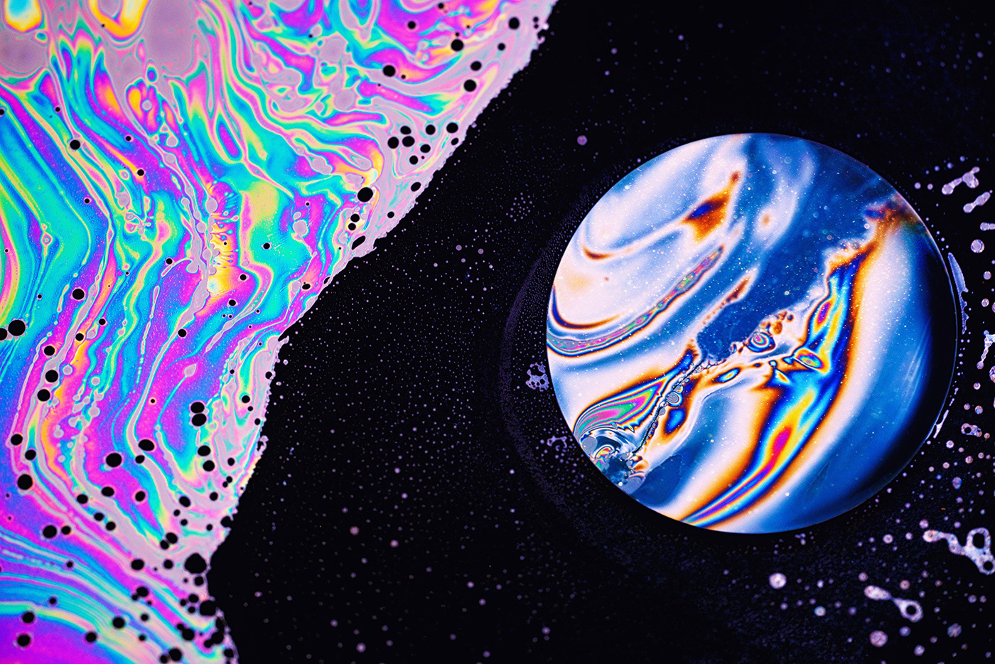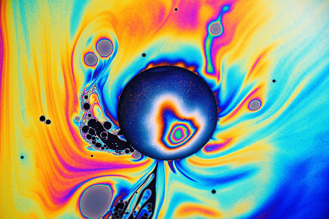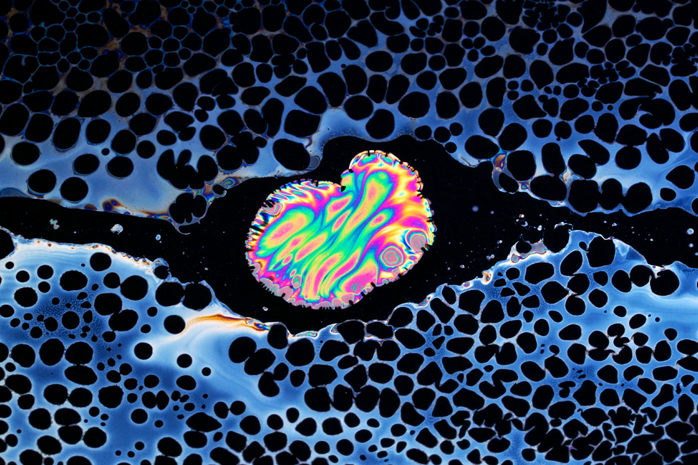 The main frames, because of which I made this video was ones where the rainbow spot originates inside the circle, spreads, but don’t go beyond the boundaries of the form and dissolves in the dark spot.