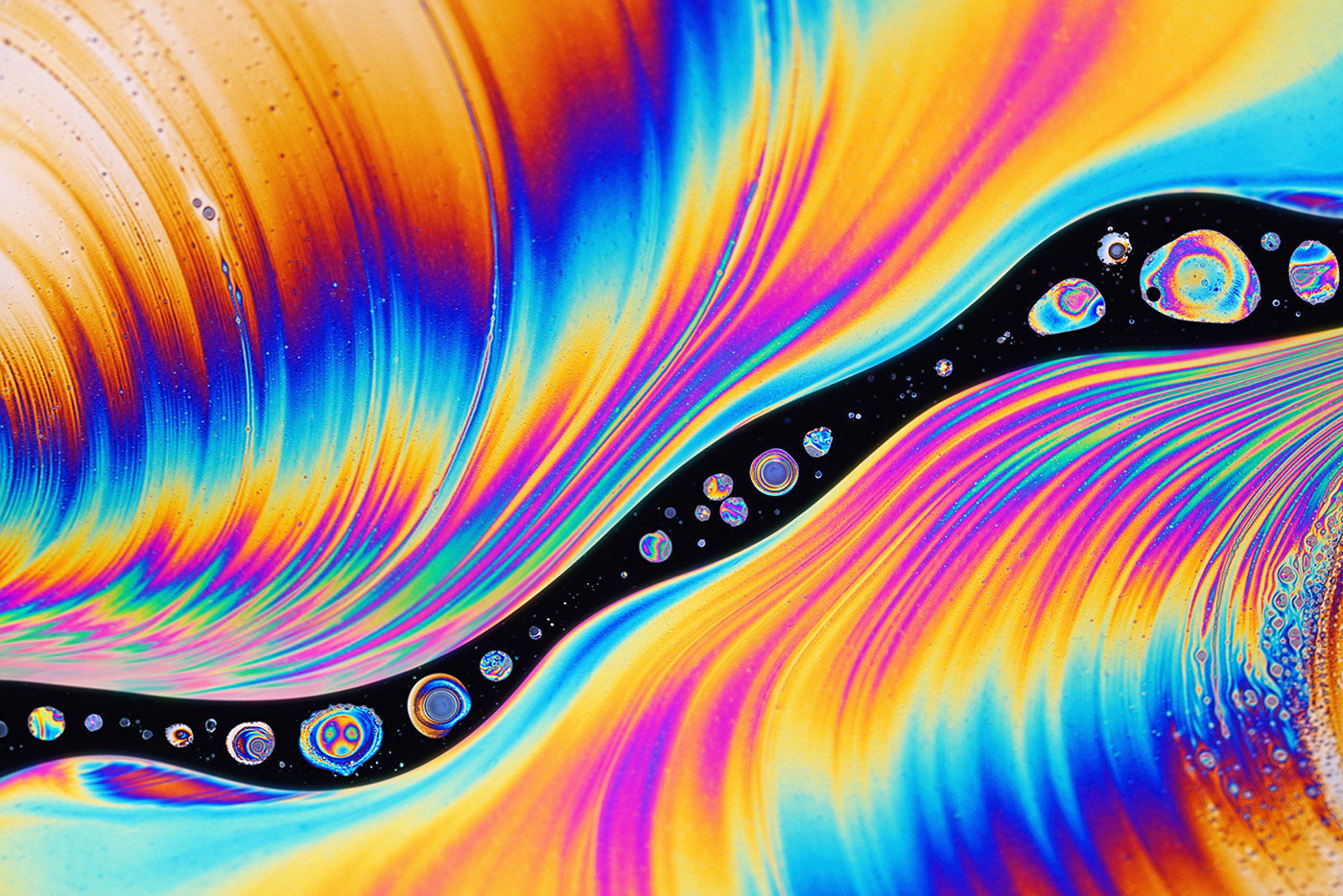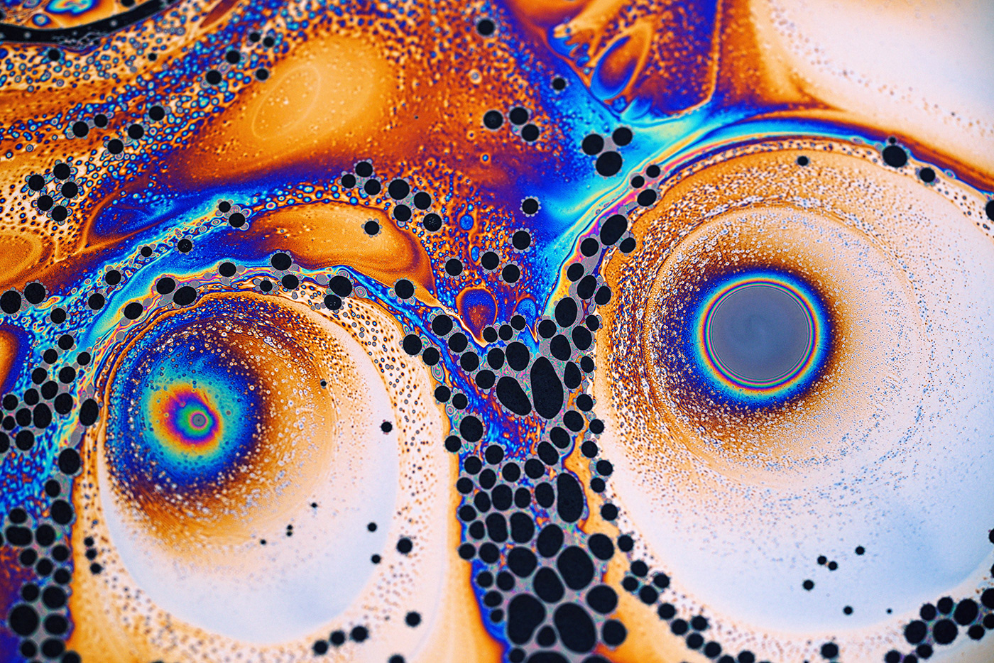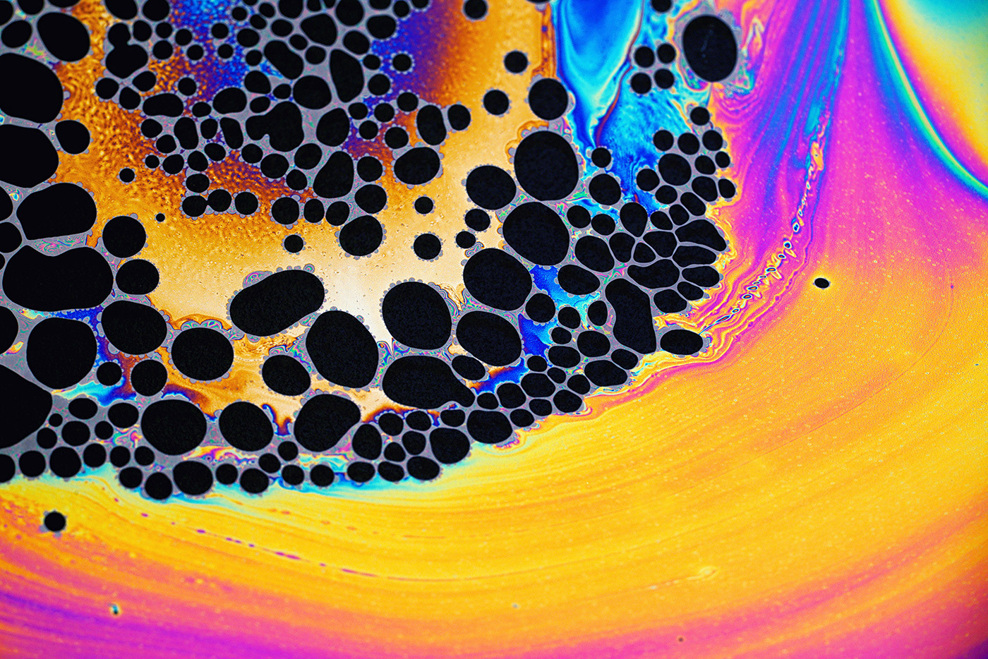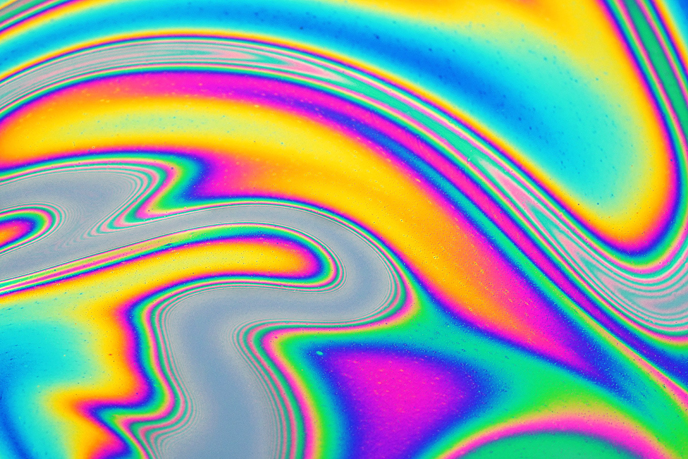 The main frames, because of which I made this video was ones where the rainbow spot originates inside the circle, spreads, but don’t go beyond the boundaries of the form and dissolves in the dark spot.