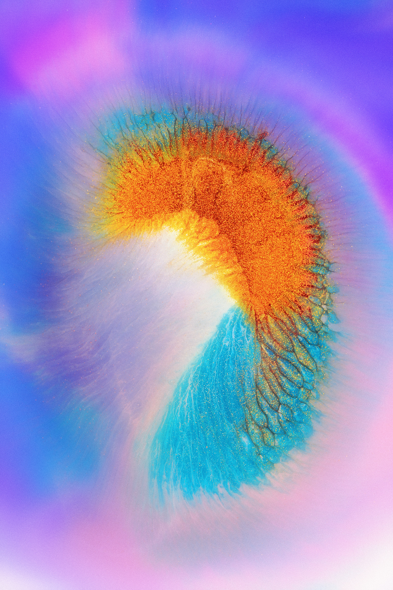 This series of abstract photographs is a contemplative journey through shimmering forms and fluid textures.