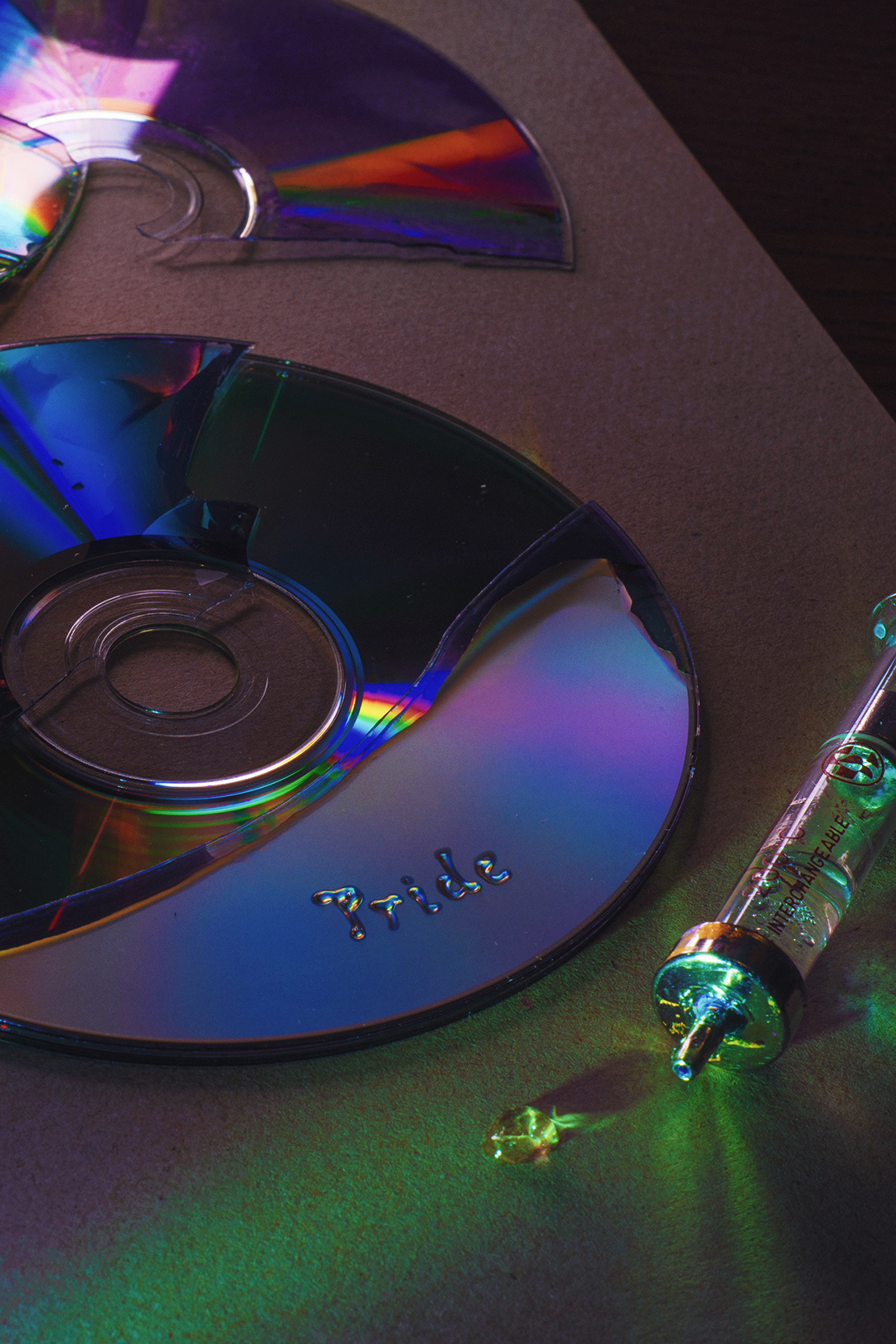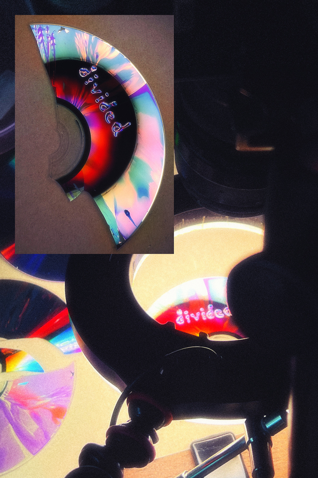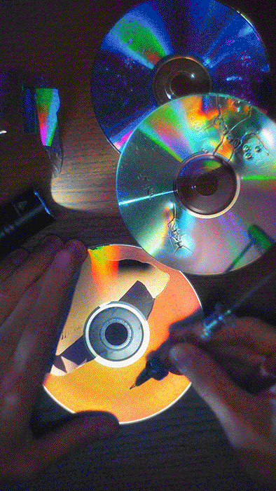 The brilliance of CDs and the chaotic nature of liquids merge to transform vulnerability and destruction into mesmerizing visual inspiration.
