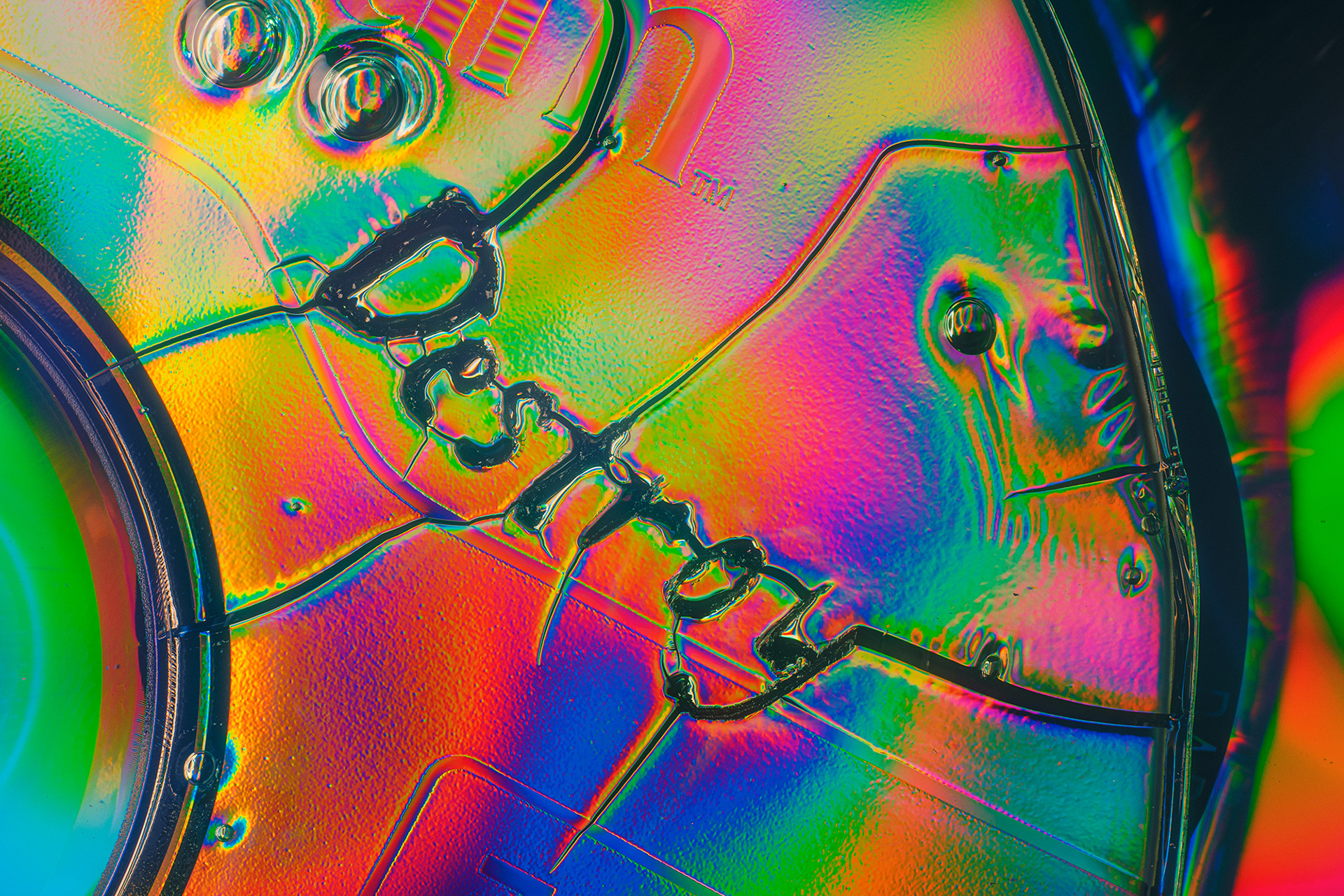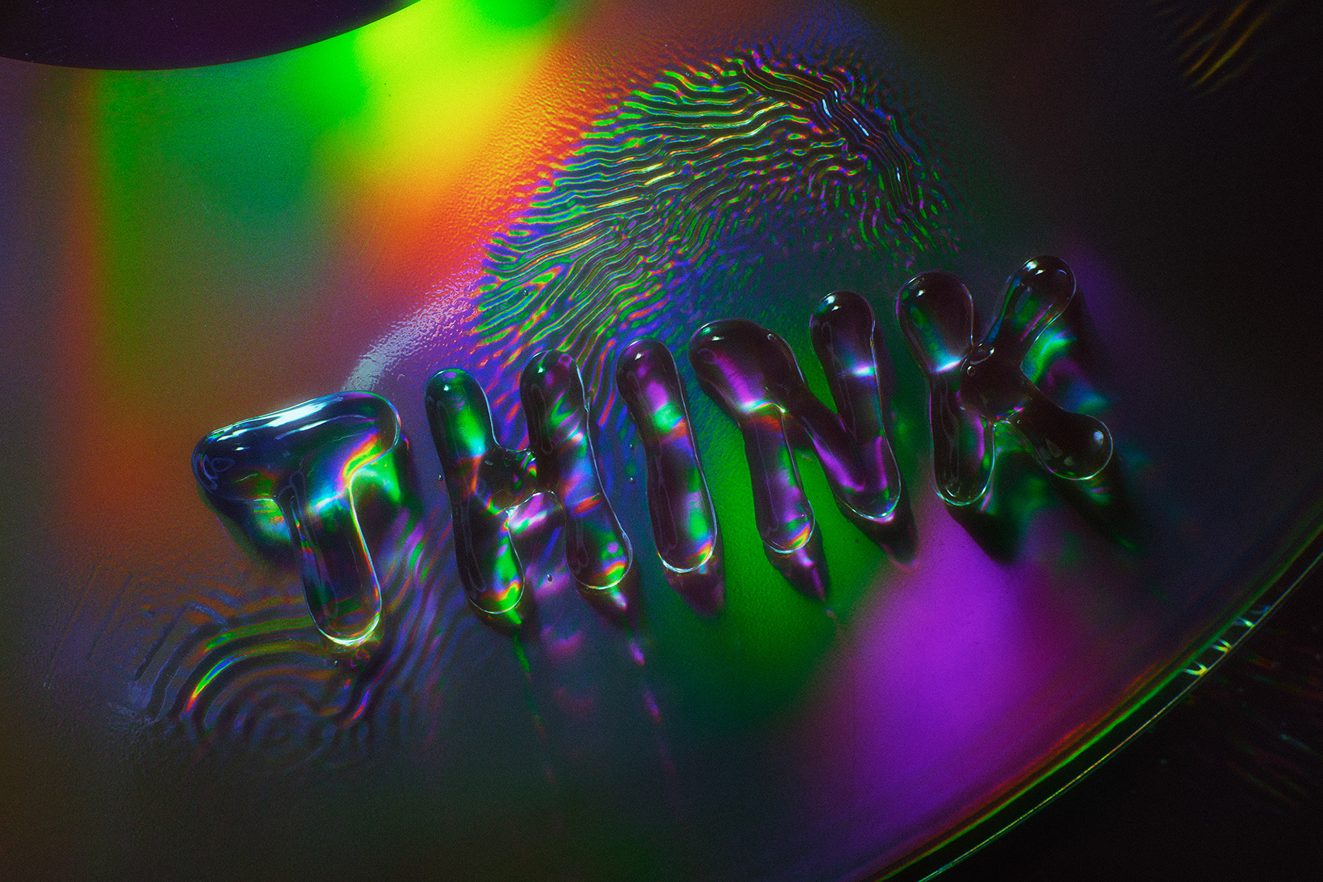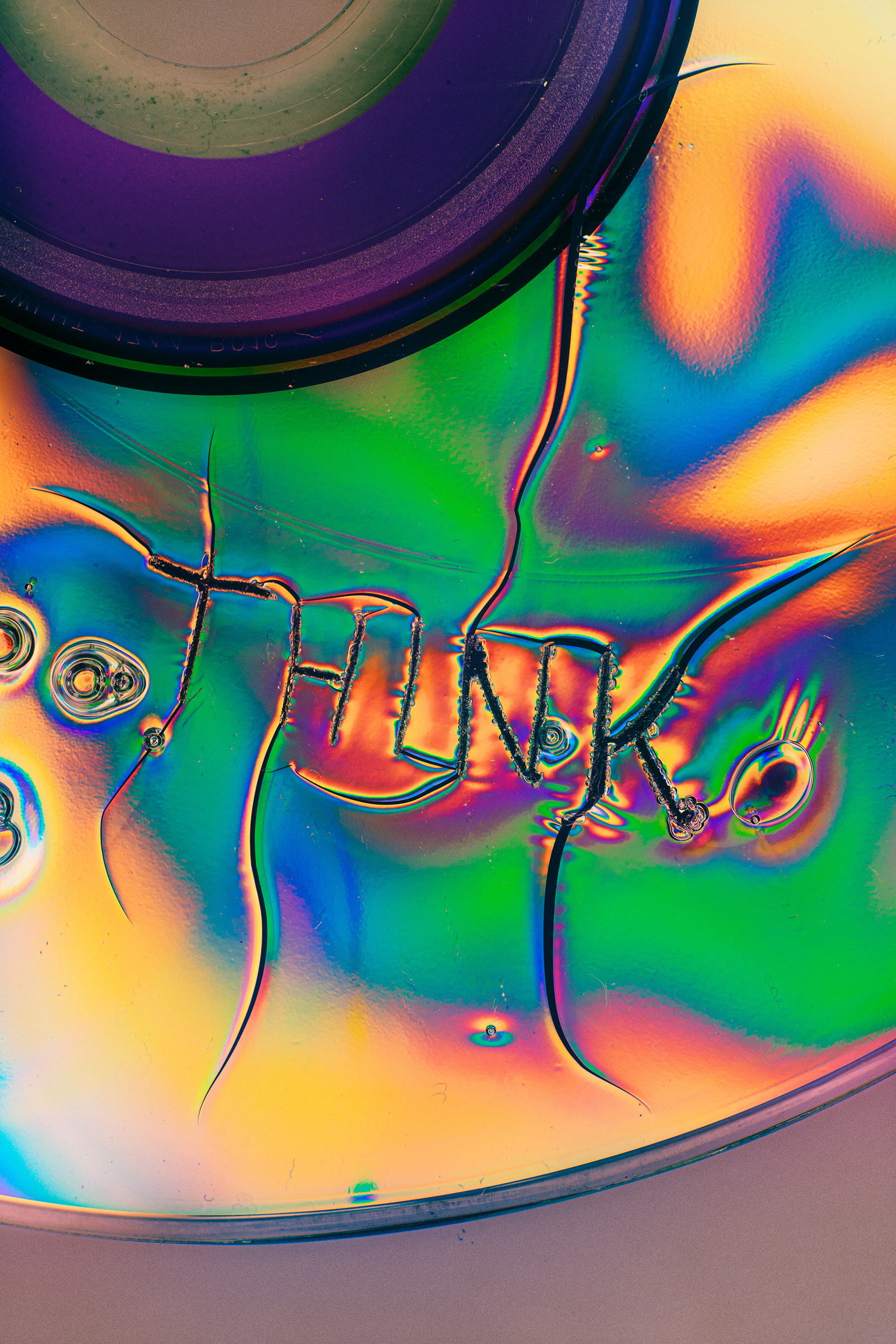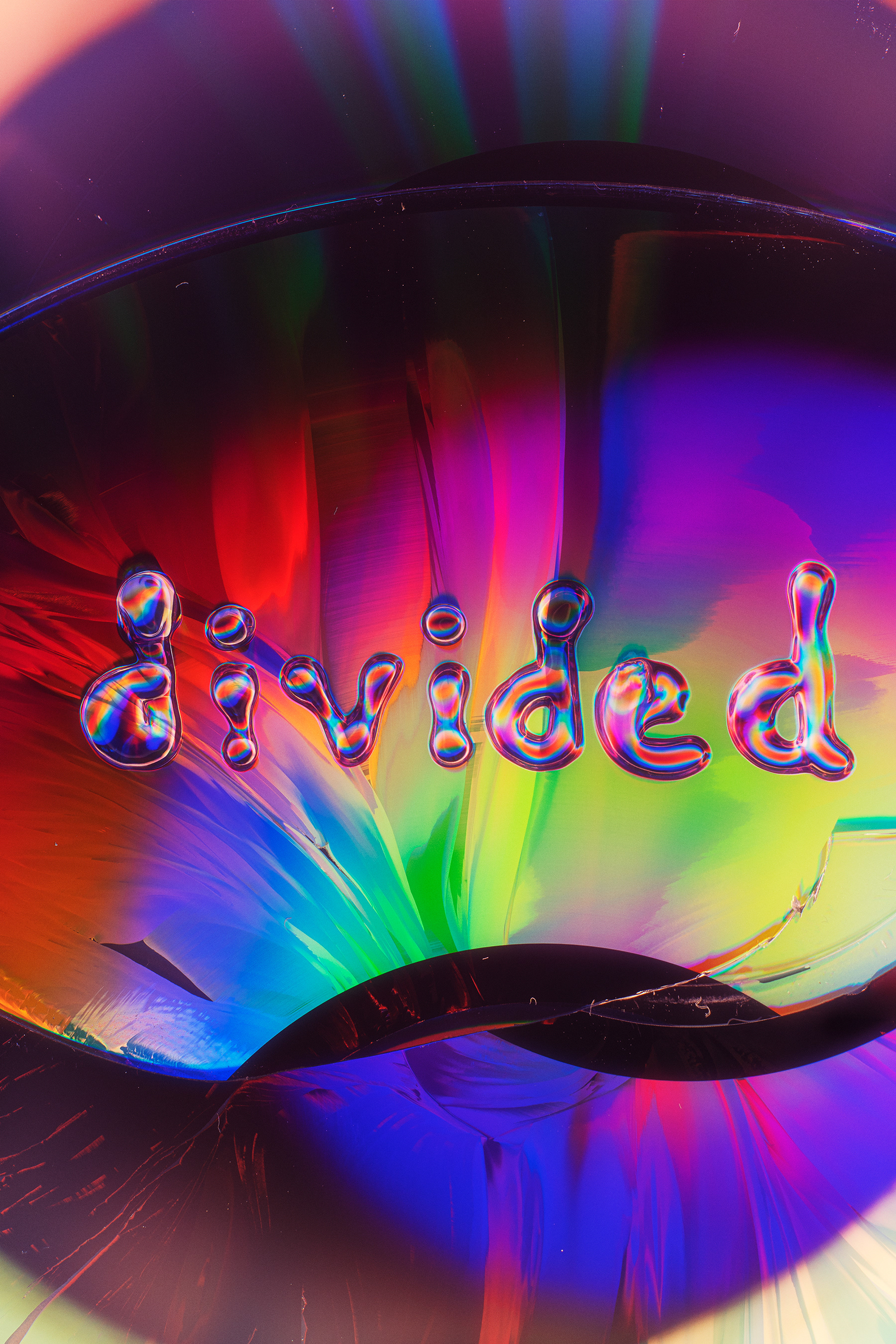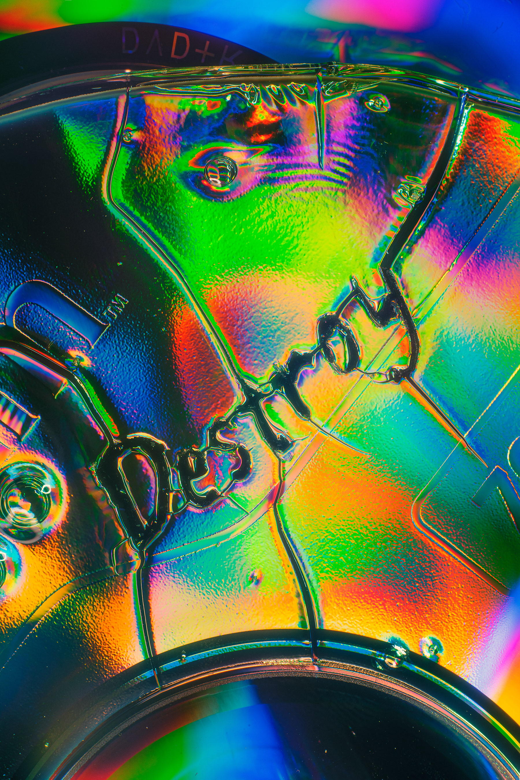This series examines how letters reveal the fragility of CDs, once a symbol of digital reliability. Through destruction and the interaction of liquids with the surface of compact discs, unique forms are born. The effects of refraction, reflection, and fluidity shape letters with vivid colors and intricate textures that seem to come alive in motion.