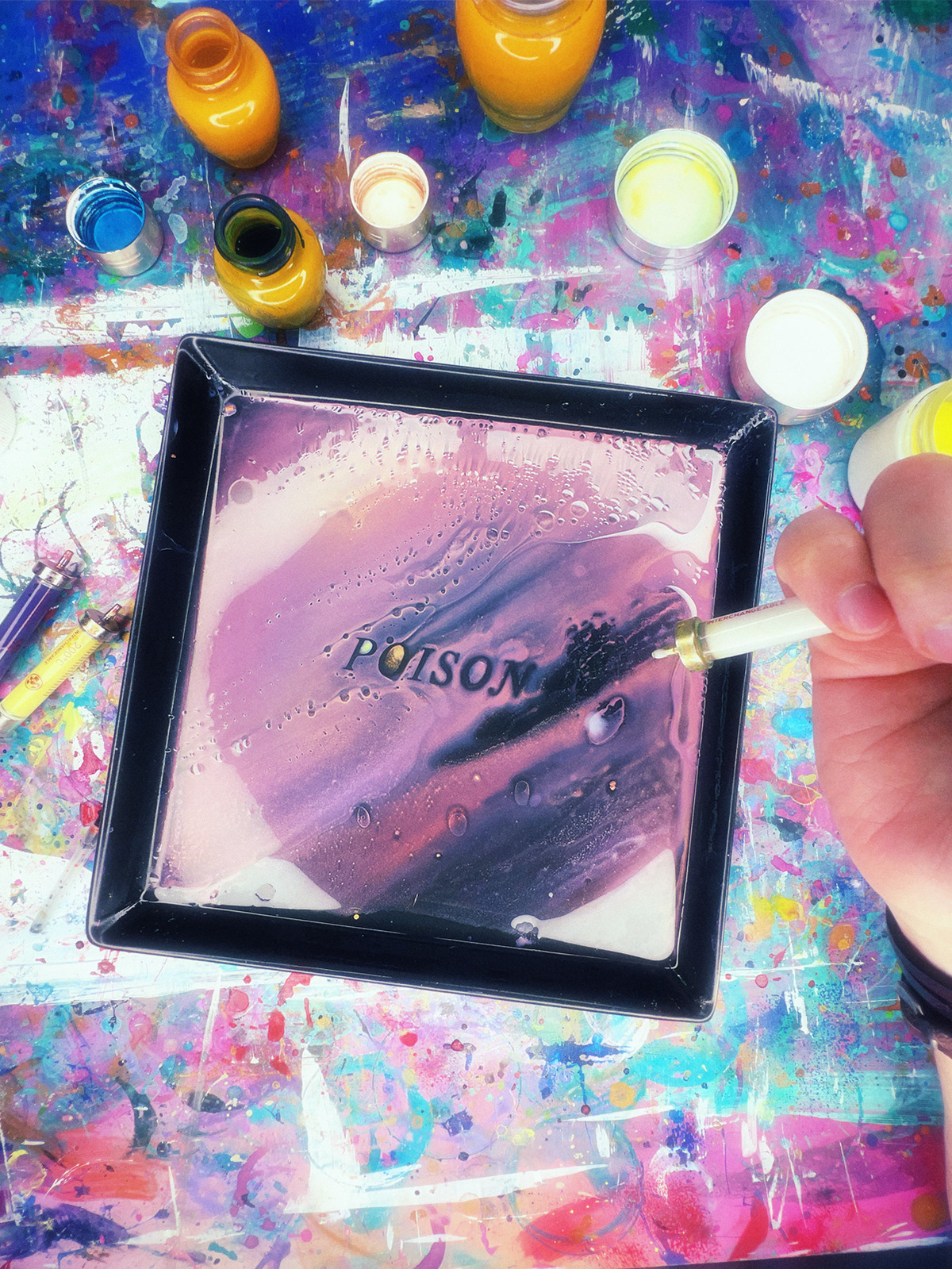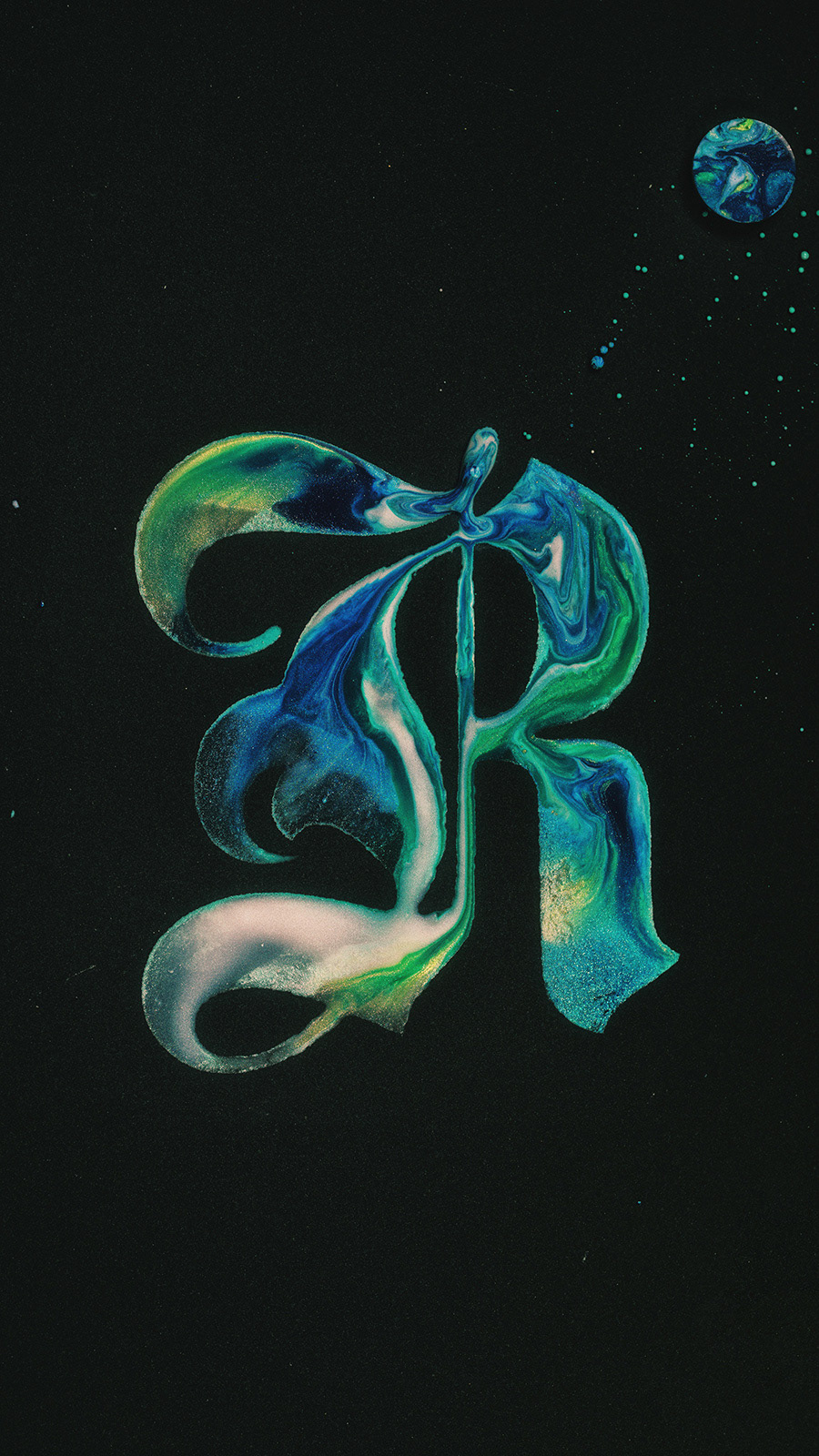 Each letter in this series is created through the interaction of acrylic paints, oil, and water. I explore how textures, colors, and layers intertwine, forming unique compositions. This process allows me to craft typefaces that convey a sense of motion, fluidity, and harmony.